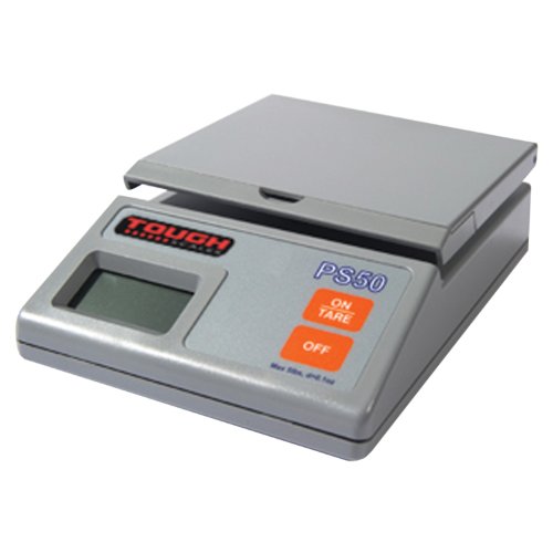 The United States Postal Scales PS50 is a 5-pound Digital Electronic Postal Scale that weighs items between 0 to 5 pounds and displays the weight to .1 pounds, so the mail is not returned for insufficient postage. Weight is displayed on a 7 segment LCD. To achieve its .1-pound Accuracy, the PS50 uses its automatic calibration feature. The Tare feature is used to set the weight of a container for small items to zero, so when the items are weighed, only the items weight are shown. A mechanical overload protector prevents damage to the scale when weighing items over 5 pounds. The weighing platform, which measures 5.5 by 5 inches, features a fold-up top for weighing oversized items, such as large flat envelopes or mailing tubes. The product is made of fine-textured, high-impact ABS plastic, The PS50 operates either on AC with the included adapter or on a 9-volt battery (Not Included), and features a 1 minute warm up time. When operated on the battery, an auto shut off features turns the PS50 off after 5 minutes to conserve battery life.